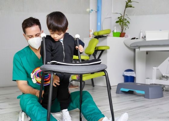 Pediatric physical therapy uses child-friendly equipment like balance balls, soft mats, walkers, and strengthening tools. Exercises are designed to feel playful while targeting motor skills, balance, and coordination. Each session at our physiotherapy center near you is customized to your child’s needs, ensuring they stay engaged, active, and excited to participate.